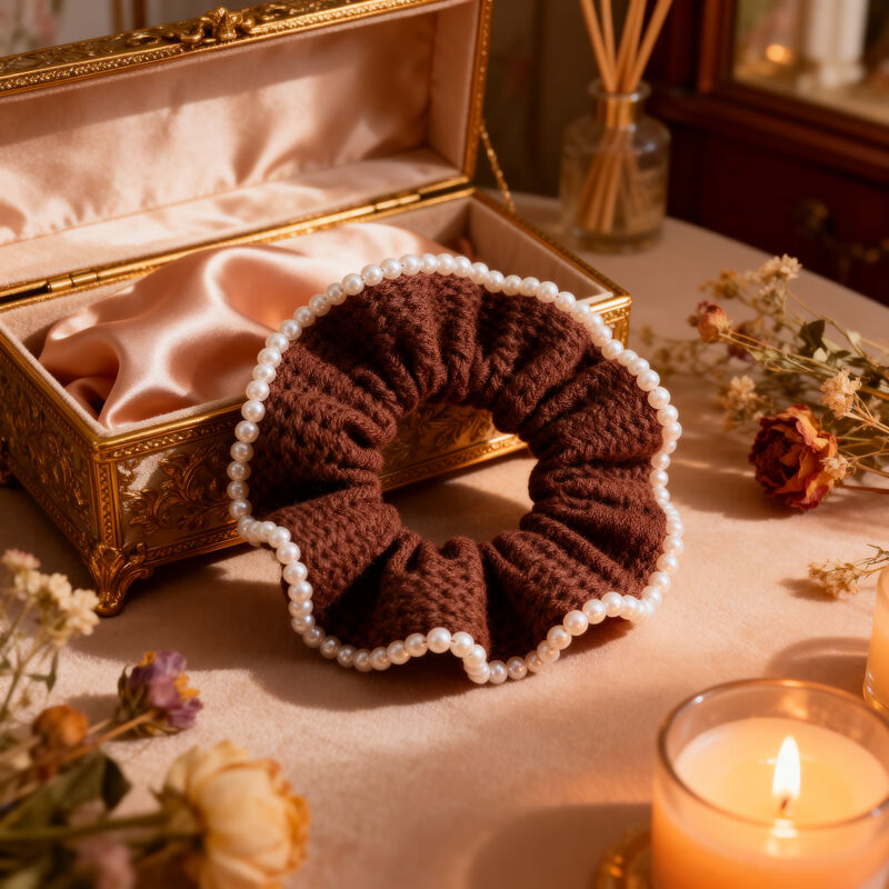 فروش گرم لوازم جانبی عمده طرح پنبه ارگانیک Scrunchies سفید مروارید مو Scrunchy برای زنان دختران